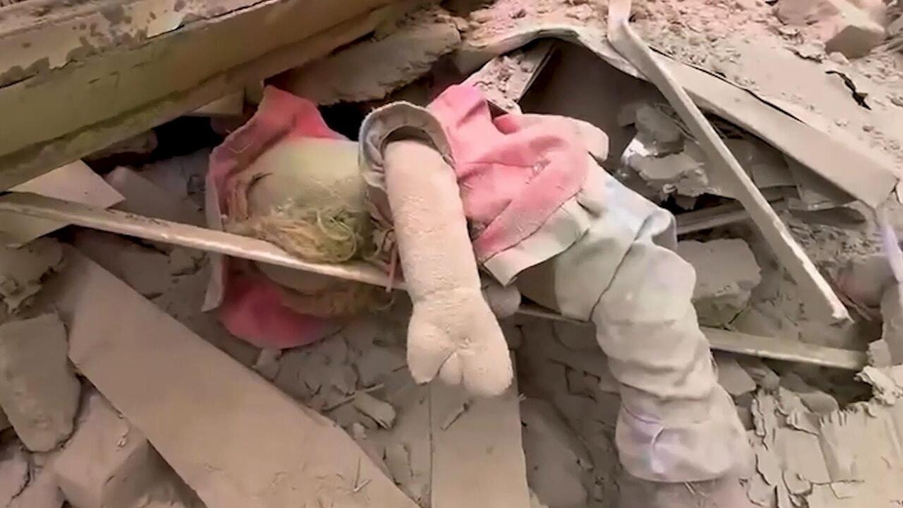 Dolly in the rubble - Child's toy seen as dead, injured pulled from debris in Tehran