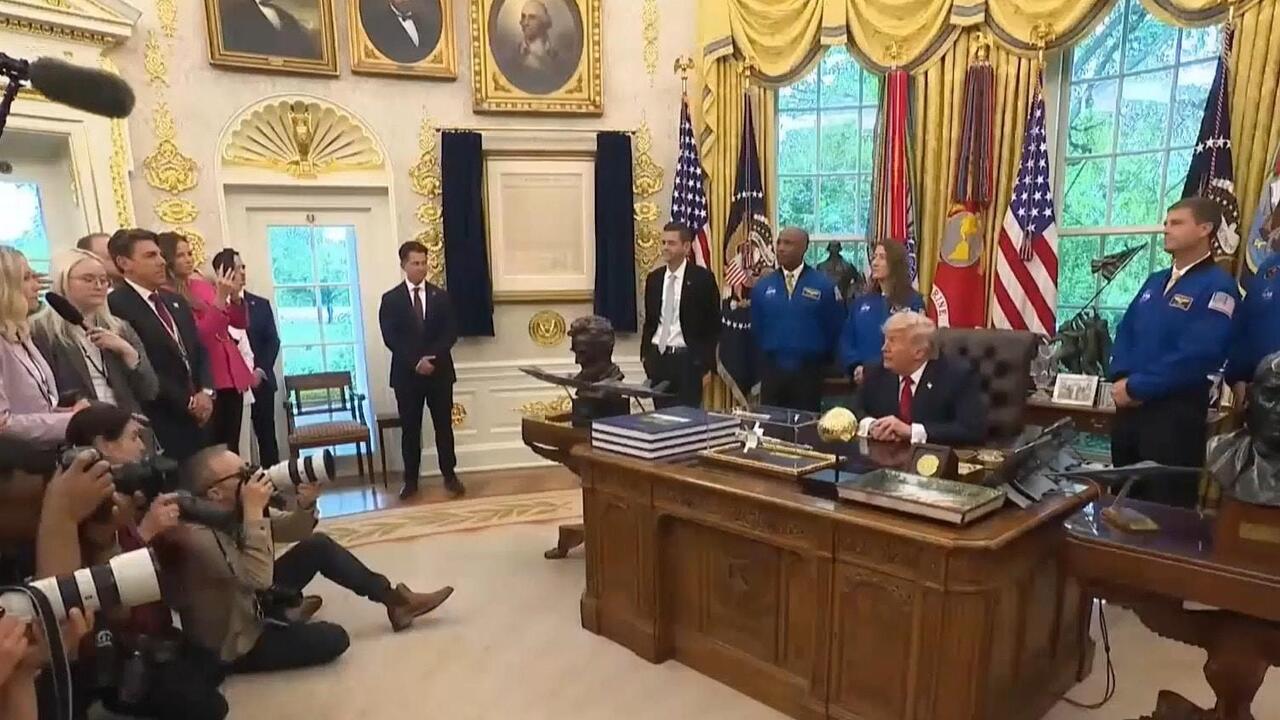 The 'Wolf Moon', the first full moon of 2025, shines over Kish off the southern coast of Iran on Monday, January 13, as seen from atop the city's Golden Towers.